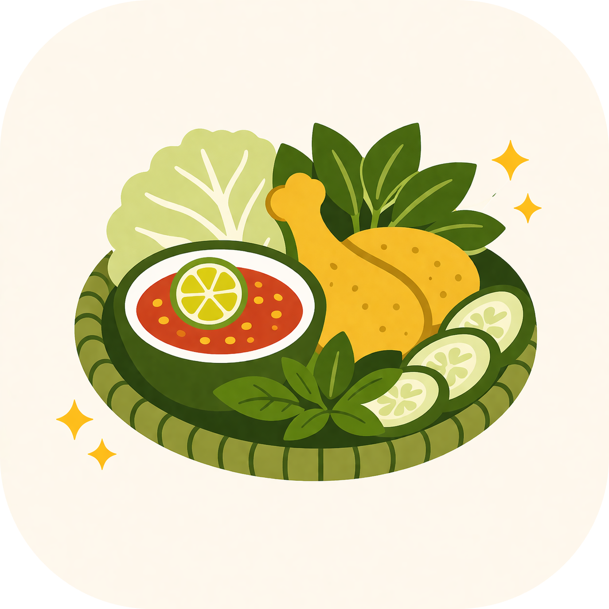 Ayam, Timun, Kemangi, Cabai, Terasi